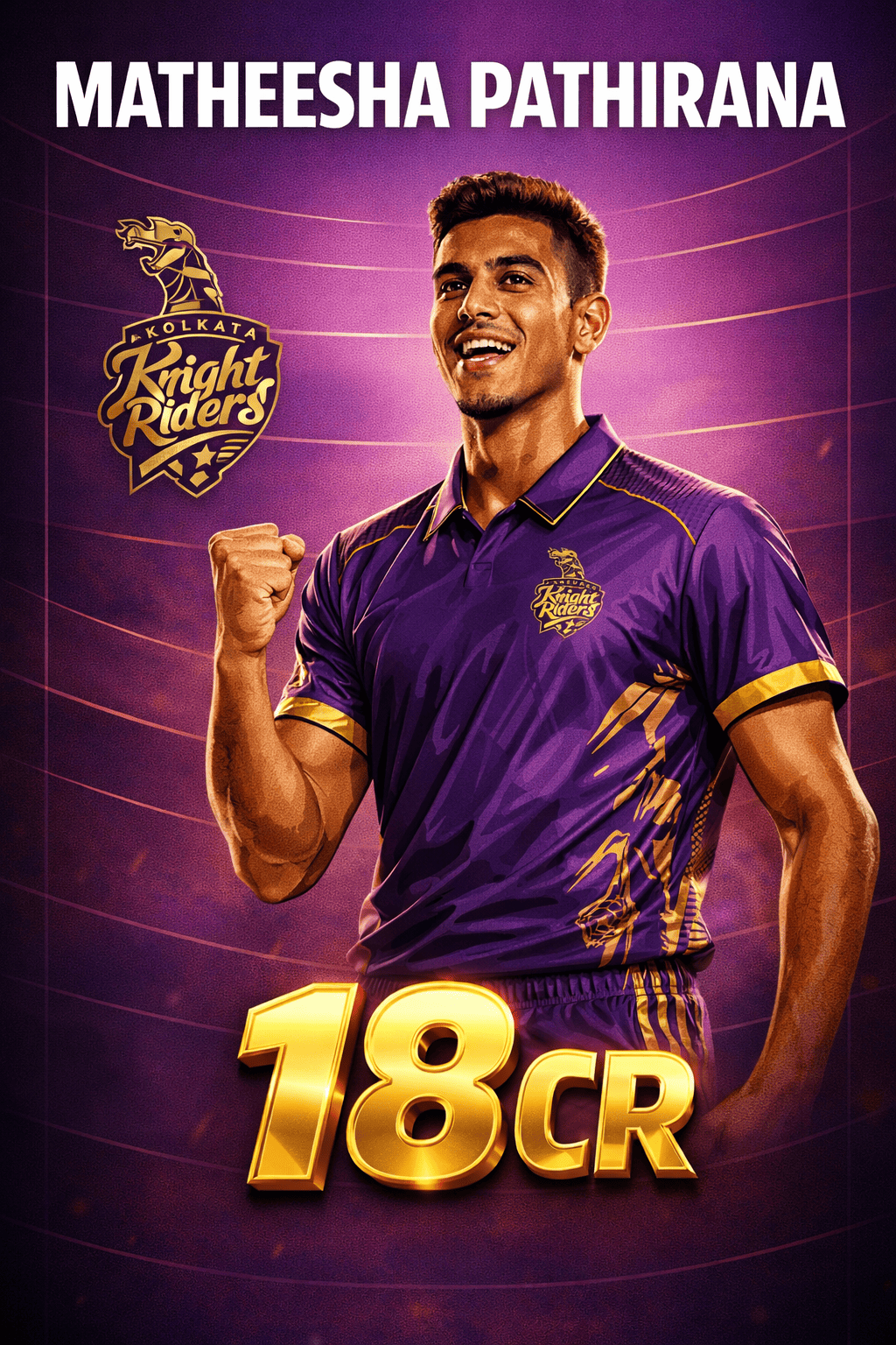 | மதீஷா பதிரானா (SL) | கொல்கத்தா நைட் ரைடர்ஸ் (KKR) | ₹18 கோடி | ₹2 கோடி |