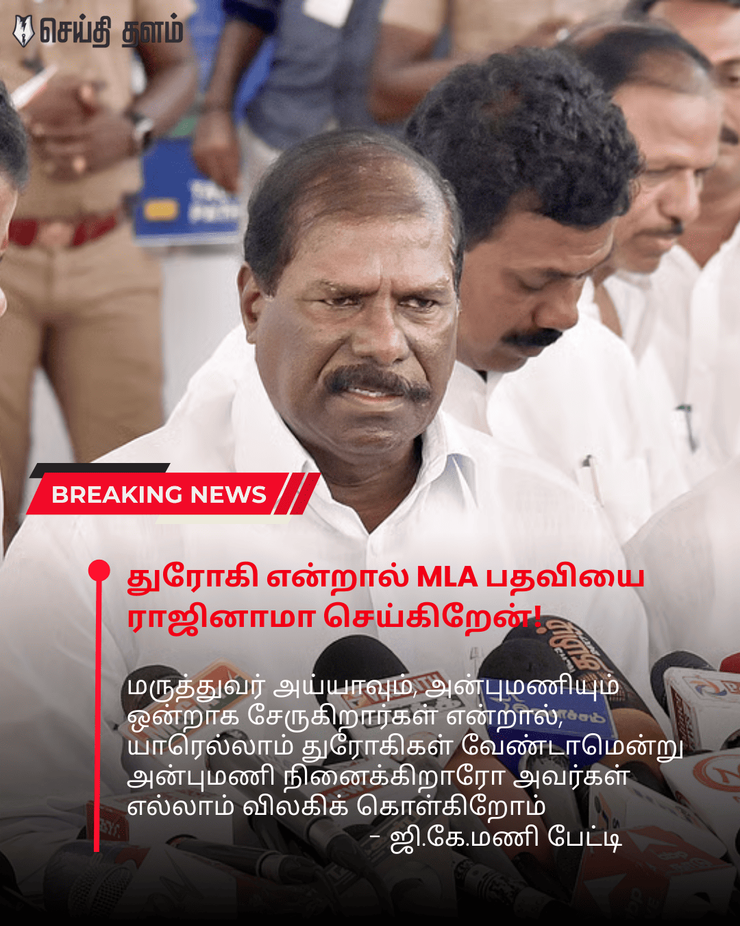 1. 📢 துரோகப் பட்டம்: ஜி.கே. மணியின் ஆவேசம்