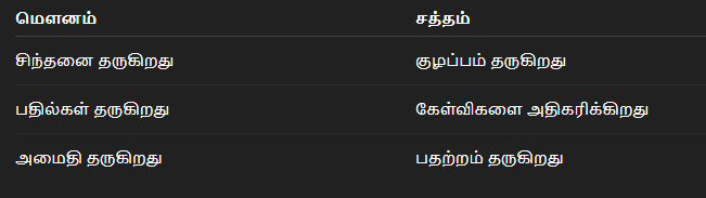 மௌனத்தை நாம் வெறுமை என்று தவறாக புரிந்து கொள்கிறோம். ஆனால் உண்மையில்: