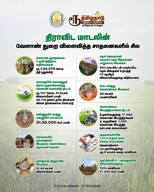 தமிழ்நாட்டு வரலாற்றில் முதன்முறையாக வேளாண் நிதிநிலை அறிக்கையைத் தாக்கல் செய்யத் தொடங்கிய நமது #DravidianModel அரசில், தொடர்ந்து ஐந்தாவது வேளாண் நிதிநிலை அறிக்கை தாக்கல் செய்திருக்கிறார் மாண்புமிகு MRK.Panneerselvam அவர்கள்!