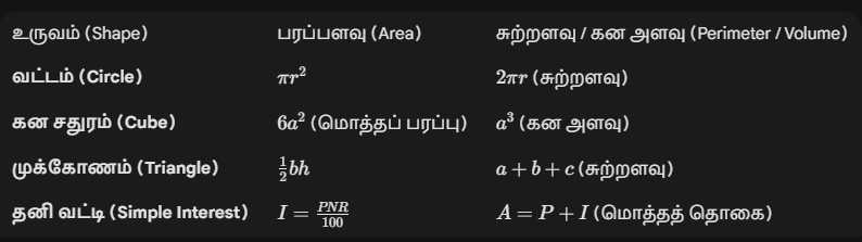 அரசுத் தேர்வுகளில் கேட்கப்படும் முக்கியமான அளவியல் (Mensuration) சூத்திரங்கள்: